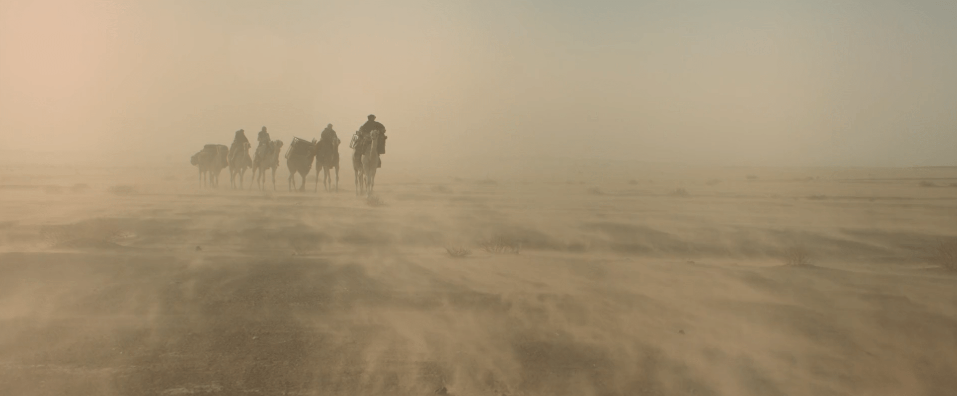 پس از تدارکات در قاهره، سفر دشوار گرترود بل به حائل که قرار است همراه با طوفان در راه باشد برای ملاقات با امیر آل رشید آغاز میشود. ورنر هرتسوگ، کارگردان فیلم، این سفر را با نماهای باز از عظمت بیابان به تصویر میکشد و برای غرق کردن مخاطب در عمق این تجربه از موسیقی متن غمگین بهره میگیرد. موسیقی متن این سکانس از کلاژی از آواهای انسانی تشکیل شده که جملاتی از هم گسیخته و مرموز را به زبانهای فارسی و عربی زمزمه میکنند.
